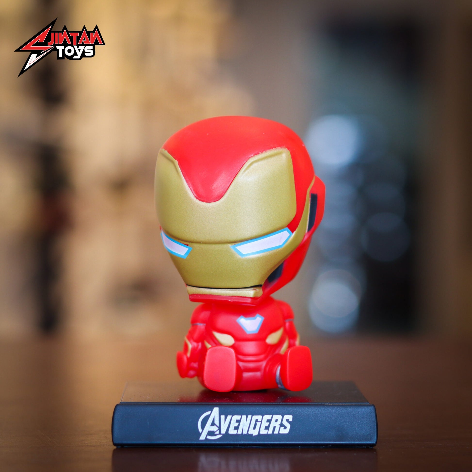 - Iron Man bobblehead with iconic superhero design