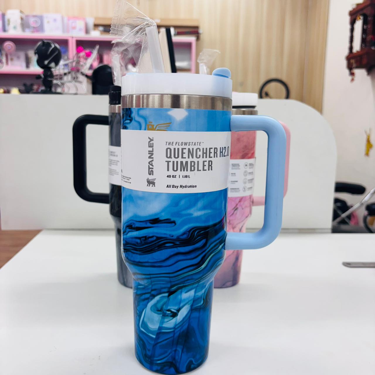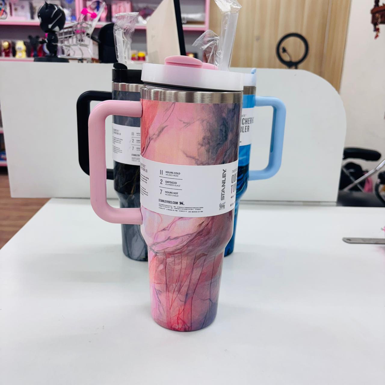 - Stylish marble design tumbler with handle