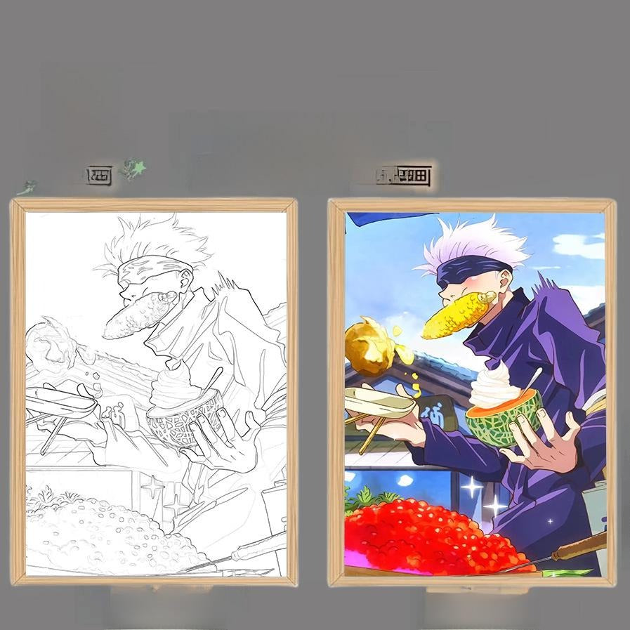 - LED backlit frame that reveals vivid anime artwork.
